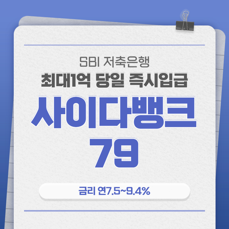 SBI 저축은행에서 은행권 대출의 까다로움을 타겟으로 나온 사이다뱅크 79 신용대출상품에 대해 알아보겠습니다.