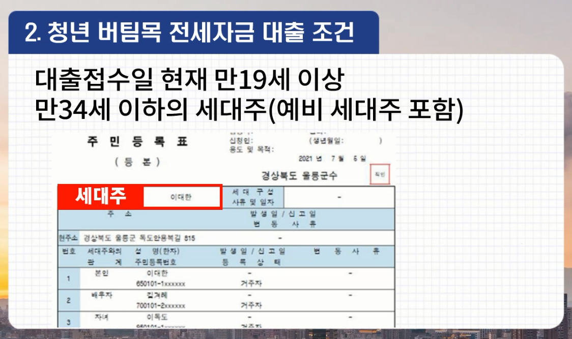 2. 대출 접수일 현재 만 19세 이상 만 34세 이하의 세대주(예비 세대주 포함)여야 합니다.