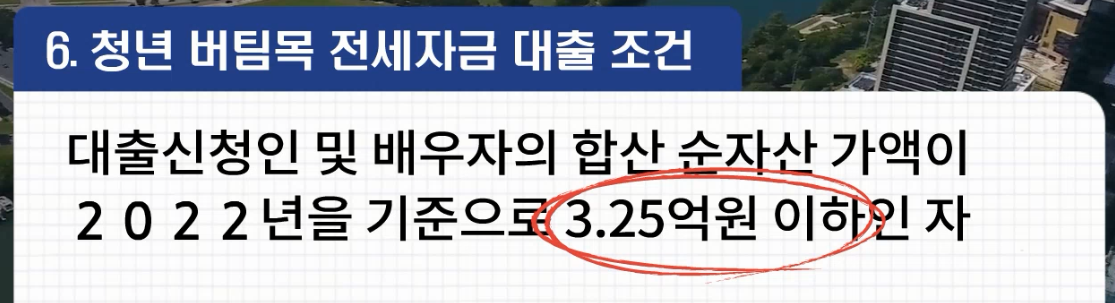6. 대출신청인 및 배우자의 합산 순자산가액이 2022년 기준으로 3.25억원 이하인 자