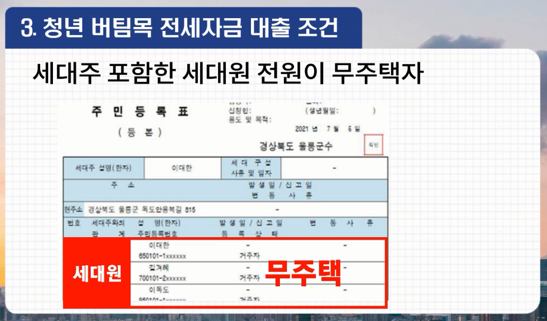 3. 세대주 포함한 세대원 전원이 무주택자여야합니다.