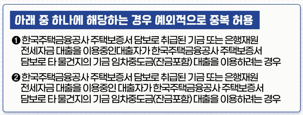 그러나 예외적으로 아래와 같이 중복대출이 허용되는 항목이 있습니다.