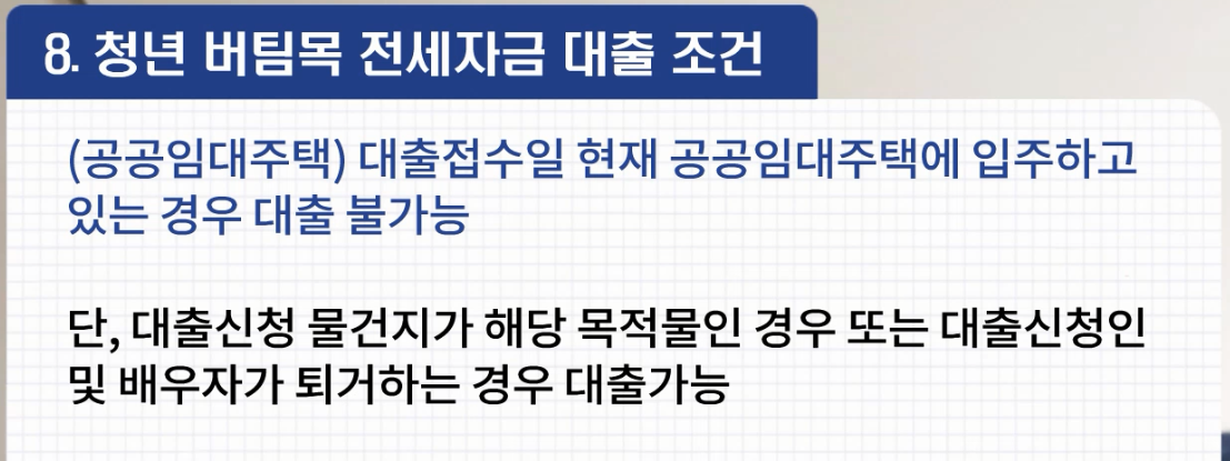 8. 대출접수일 현재 공공임대주택에 입주하고 있는 경우 대출 불가