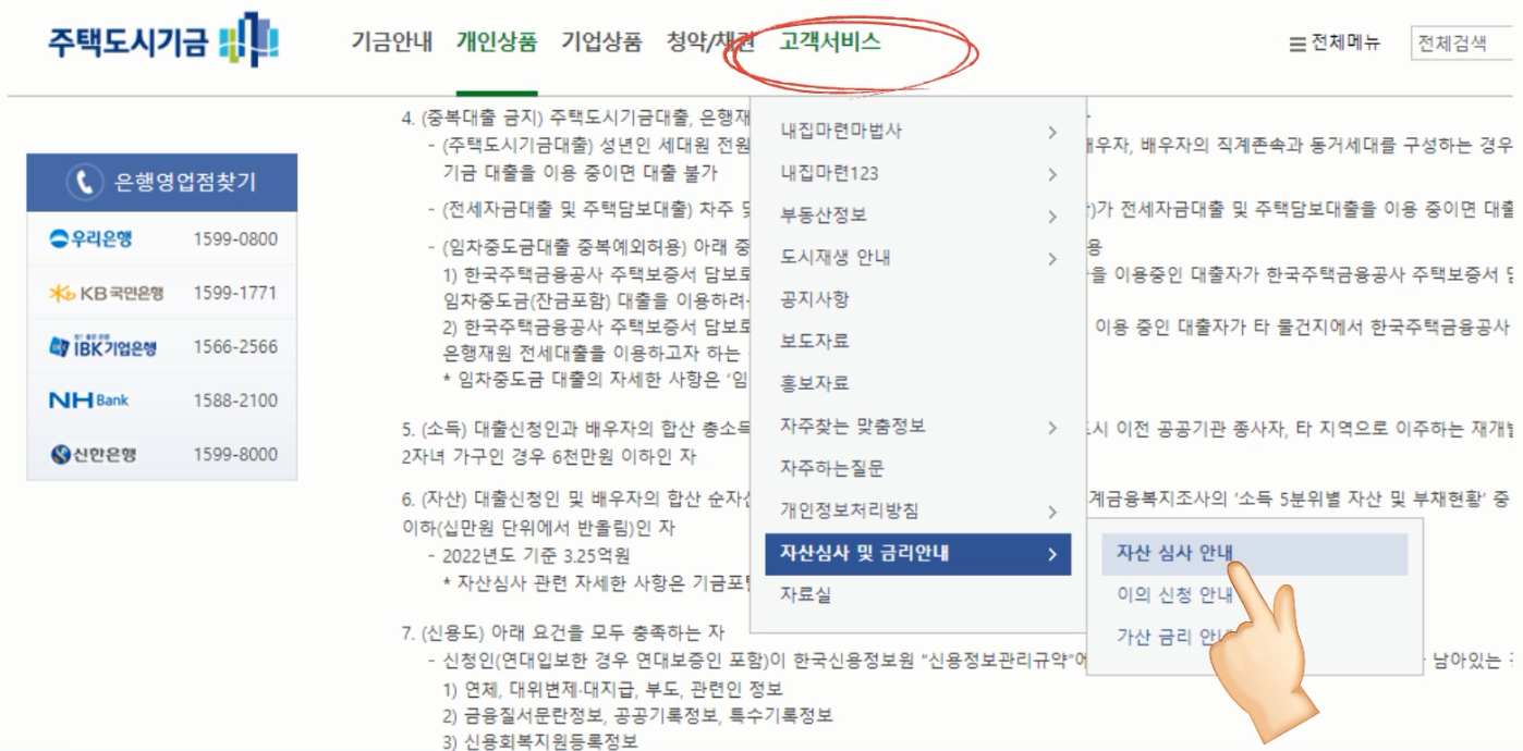 자산심사와 관련하여 자세한 사항은 주택도시기금 사이트에 방문하시어 아래와 같이
